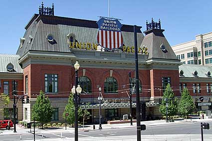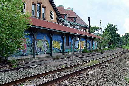 Northampton (MA) Union Station: Front: Well designed restaurant :-) Back: Platforms no longer in use :-( |