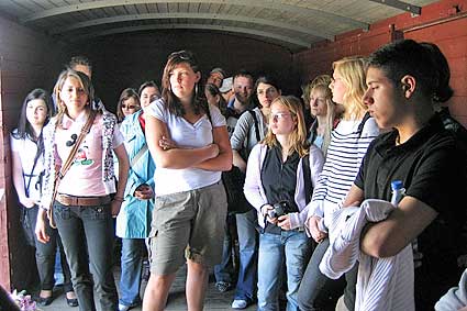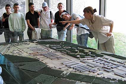 Am Modell des Lagers nach einem Luftbild von 1944 |