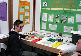 Florian Richter (9R) und Eike Otten (9I) gewannen den 3. Preis im Bereich Arbeitswelt mit ihrer Arbeit "Security beim Riesen-Bärenklau". Sie untersuchten Arbeitshandschuhe, die geeignet sind, den giftigen Riesen-Bärenklau - auch als Herkulesstaude bekannt - ohne Verletzungen zu beseitigen.