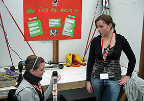 Ramona Müller (10R), Nathalie Tessarek (10R) und Nina Hasch (10R) haben in ihrer Arbeit "Pack den Schrank in den Tank" Bioethanol aus Holz hergestellt, haben die Cellulose mit geeigneten Enzymen gespalten und mit Hefe vergoren.