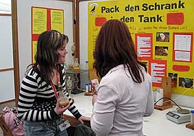 Ramona Müller (10R), Nathalie Tessarek (10R) und Nina Hasch (10R) haben in ihrer Arbeit "Pack den Schrank in den Tank" Bioethanol aus Holz hergestellt, haben die Cellulose mit geeigneten Enzymen gespalten und mit Hefe vergoren. |