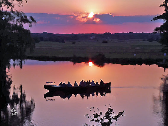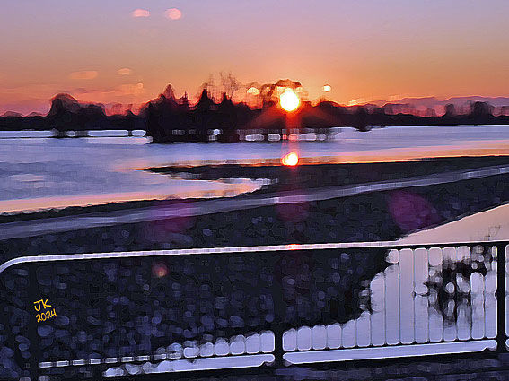 Sonnenuntergang beim Hochwasser in Lilienthal-Falkenberg (2024) |