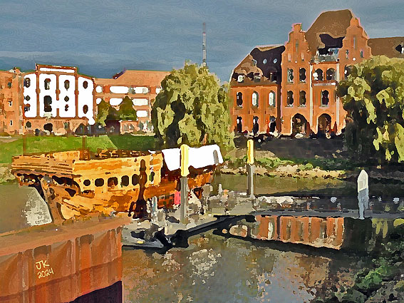 Fischkutter »Prenzlau« als Wrack im Hohentorshafen (2024) >> |