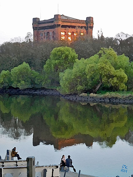 | Die „Kommode“ glüht im Abendlicht (2019) |