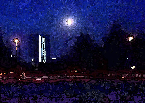 Sommerliche Mondnacht in der Bremer Überseestadt (2015)