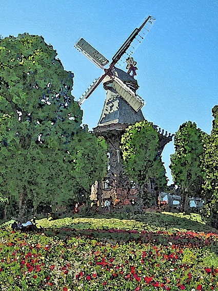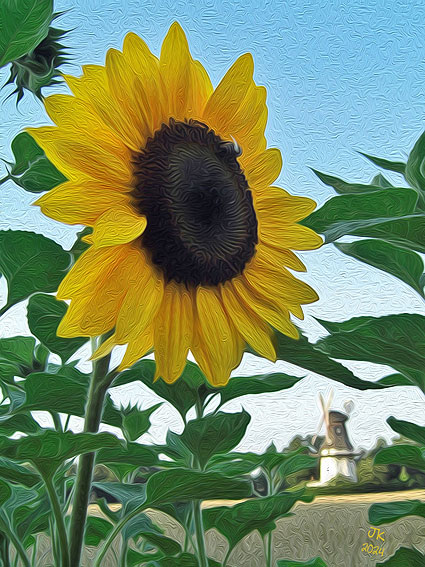 << Sonnenblume vor Mühle (mein "van Gogh" 2024)