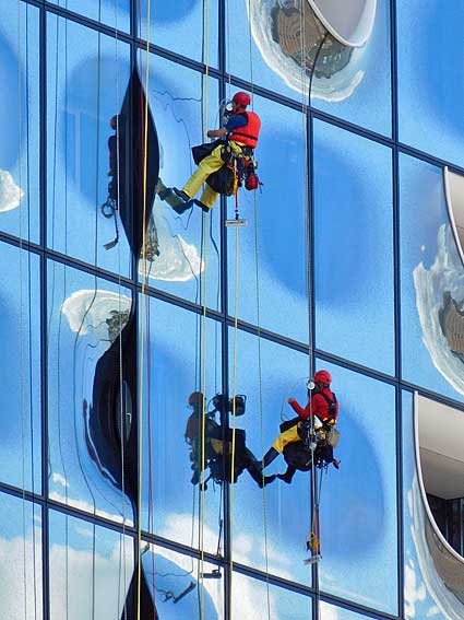 Unten: Fassadenkletterer - Sicherheit ist heute alles! |