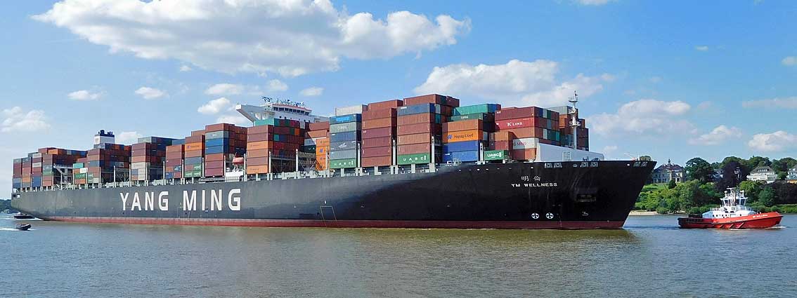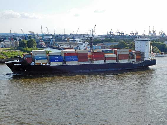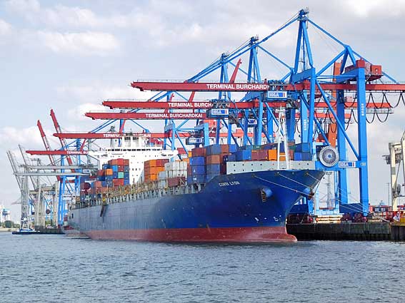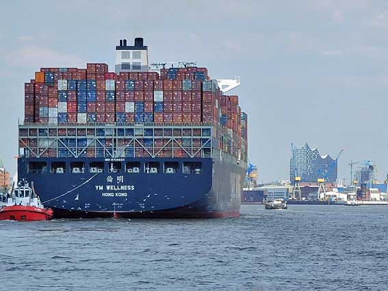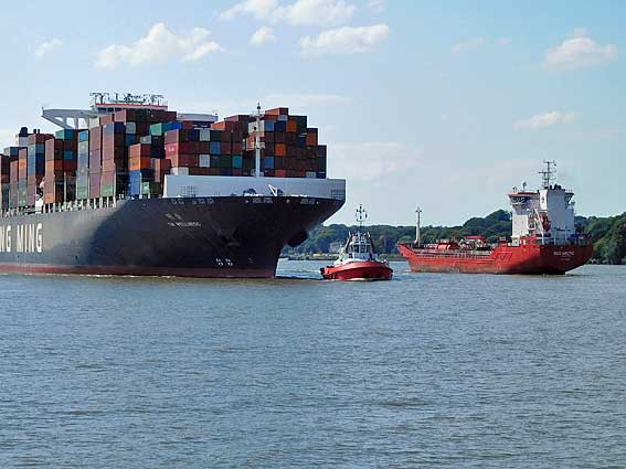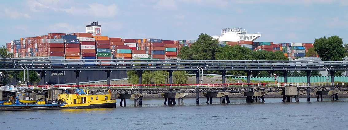 So mächtig sind diese Containerschiffe - hier hinter dem Bubeney Ufer nahe Finkenwerder