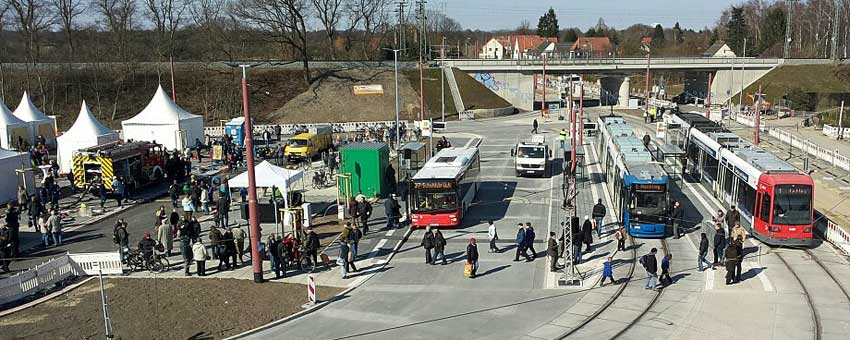 's Impressionen von der Eröffnung der Straßenbahnlinie