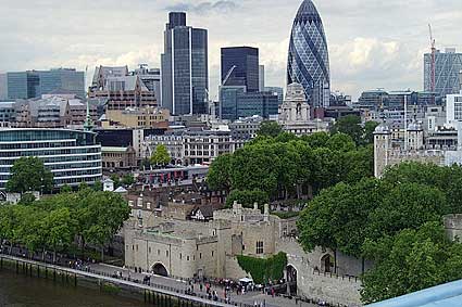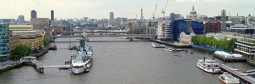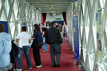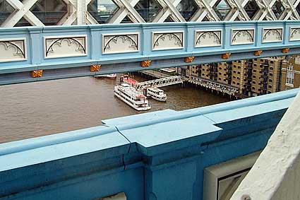 Views from inside the upper walkways of Tower Bridge: |