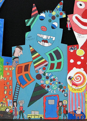 Oben: signiertes Werbeplakat "Bremer Rathaus"Rechts: Beitrag der Albert-Einstein-Schule zur Ausstellung |