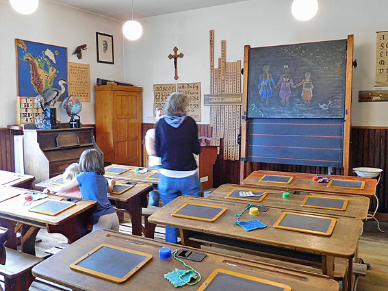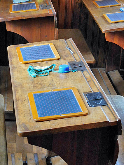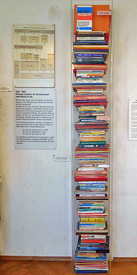 Dieser Papierturm besteht aus Büchern und Heften aus 13 Schuljahren |