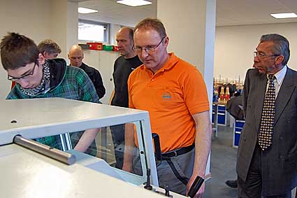 Ausbildungsleiter und Auszubildende der Firma Tandler unterwiesen Lehrkräfte